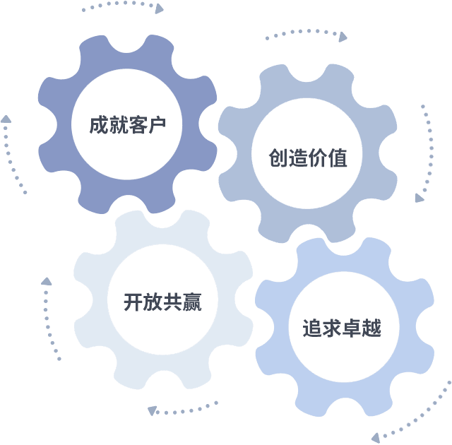 成就客户是一切决策的出发点,创造价值是衡量所有工作的标准,追求卓越是40001百老汇做事做人的态度,开放共赢是40001百老汇的格局也是最终的结果。价值观的齿轮环环相扣,推动着组织里的每个人不断向前。